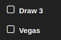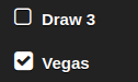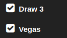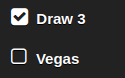 Klondike Solitaire Draw 1 (K1) Draw 3: unchecked Vegas: unchecked