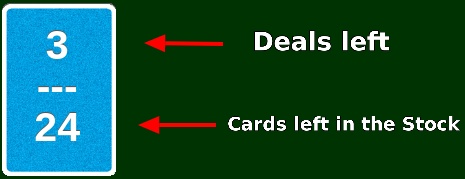 The bottom value of the x/x indicator lists the number of cards that are left in the Stock pile.